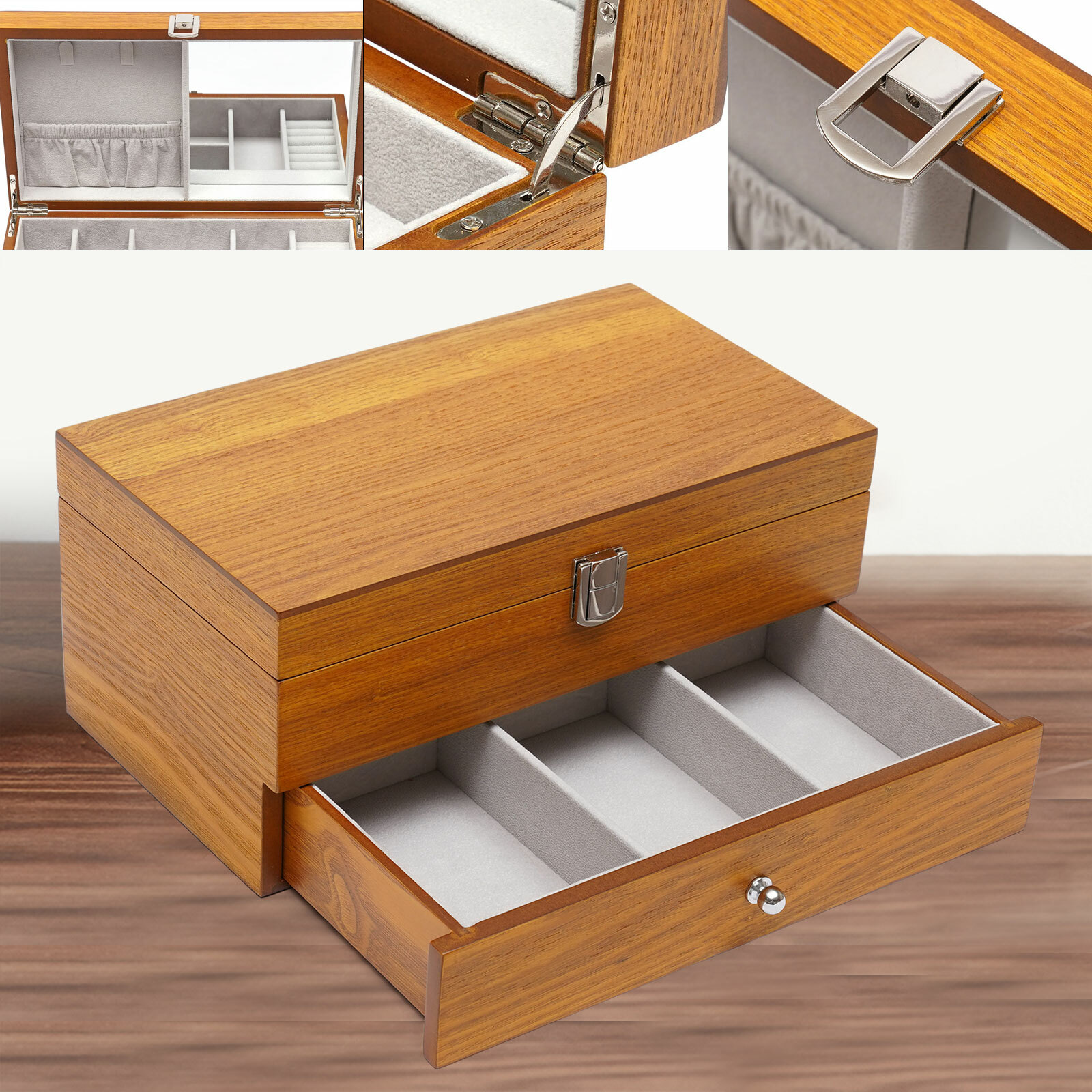 2 Layers Unfinished Drawer Jewelry Box Wood Case Jewelry Organizer Display Ebay